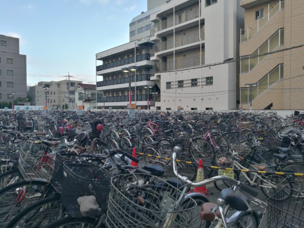 上記写真は、コロナ前の物件真裏にある駐輪場の様子です。三鷹駅を利用する人の多さが伺えます。